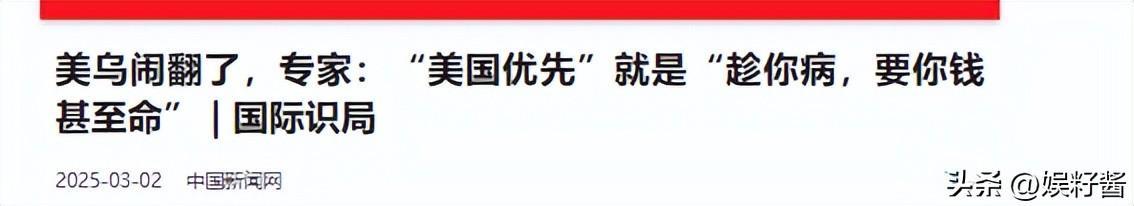 专家分析得很直白:美国新政府上台后,对乌克兰政策来了个180度大转弯,“美国优先”说白了就是趁你病要你钱,甚至要你命。